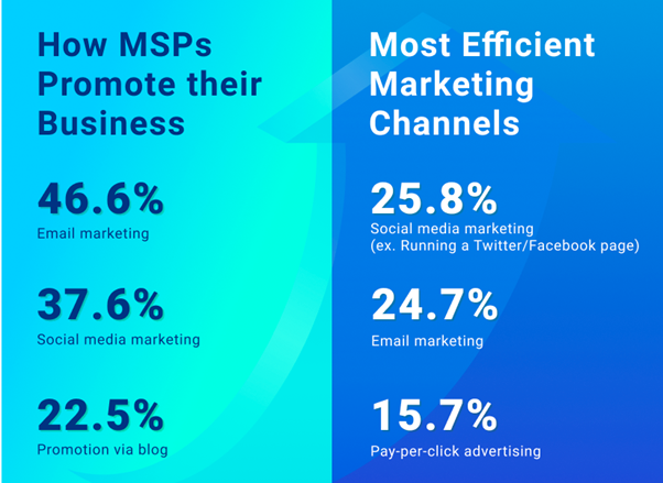 According to one study, email marketing, social media marketing and content marketing were the top three channels MSPs use to promote their business. However, before we delve into the details of how MSPs can fine-tune these approaches for more productivity, we need to introduce a strategic shift in marketing called account-based marketing or ABM.