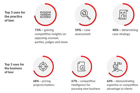 Data-driven decisioning is the overarching value proposition of the Legal Tech industry with legal professionals in one study indicating that analytics has a wide range of applications in the business and practice of law.