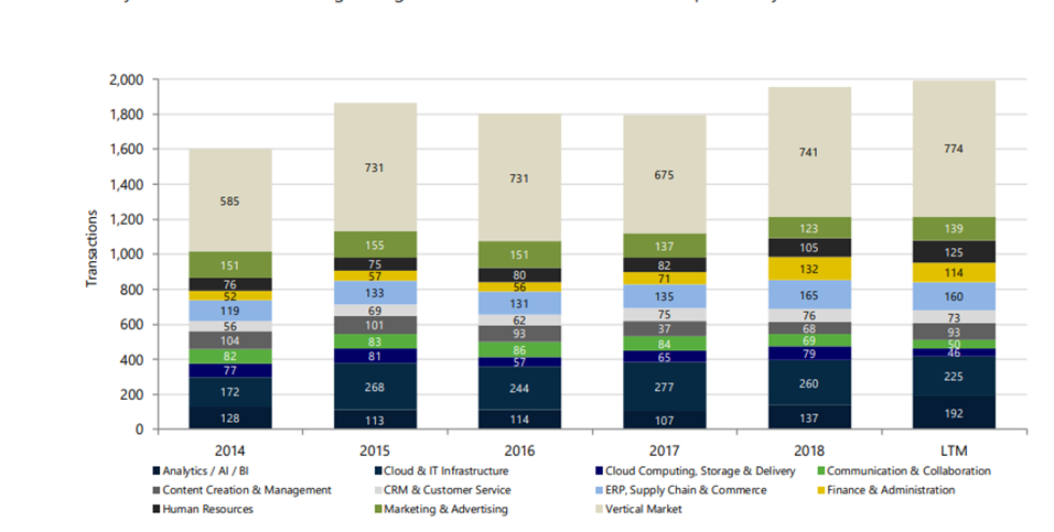 According to one analysis of SaaS and cloud-related M&A activity in Q3 2019 by investment banking firm Capstone Headwaters, the vertical market was by far the largest segment by deal count and represented approximately 40% of the transaction volume over the previous 12 months.